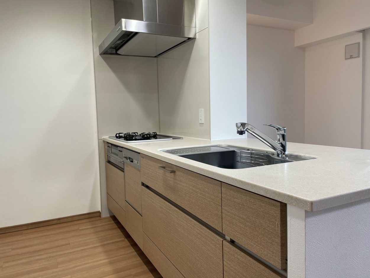 食洗機付き使い勝手の良いシステムキッチン。
