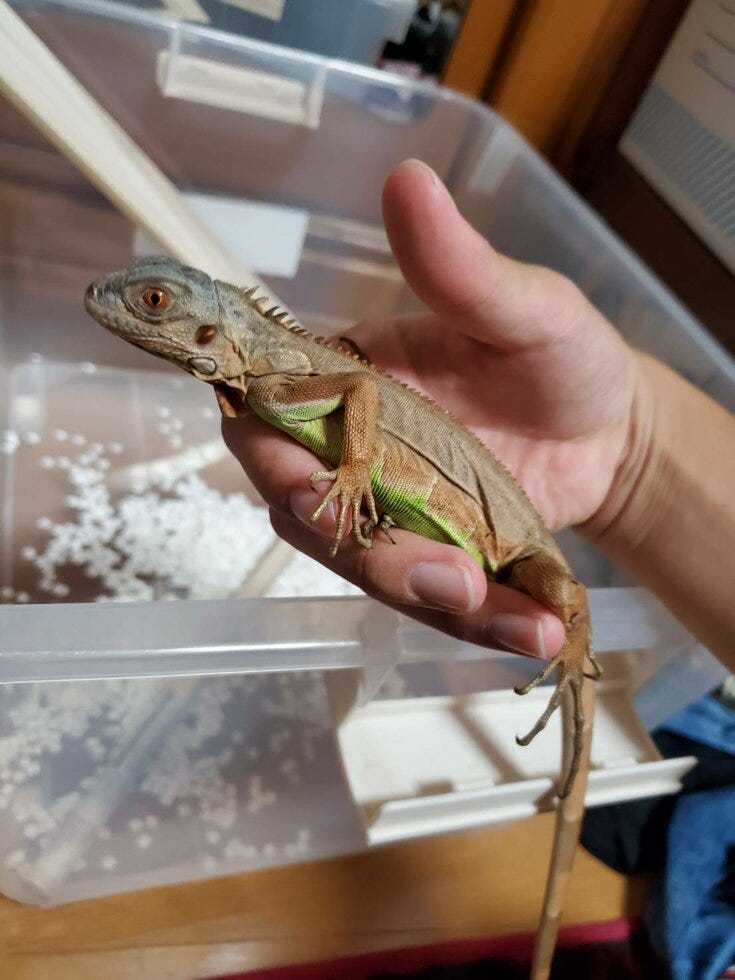 家にいるイグアナの中では、一番人慣れしていない子です。すぐしっぽでパシパシされます。