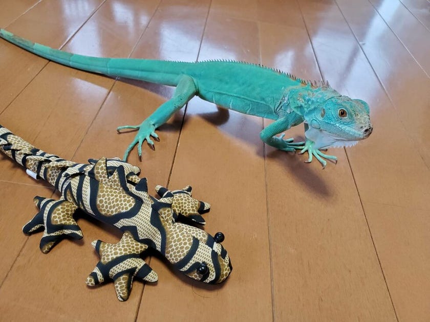 イグアナは時期によって色が変わるので、まるで違うトカゲみたいです。